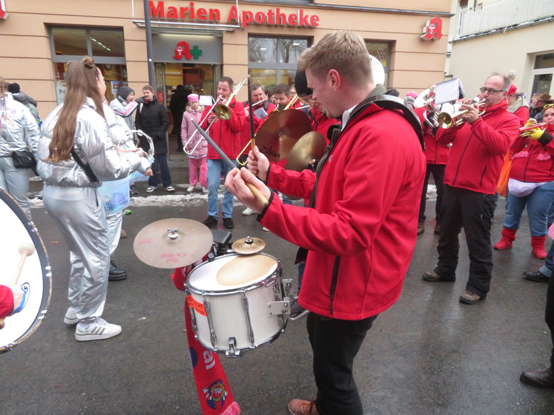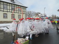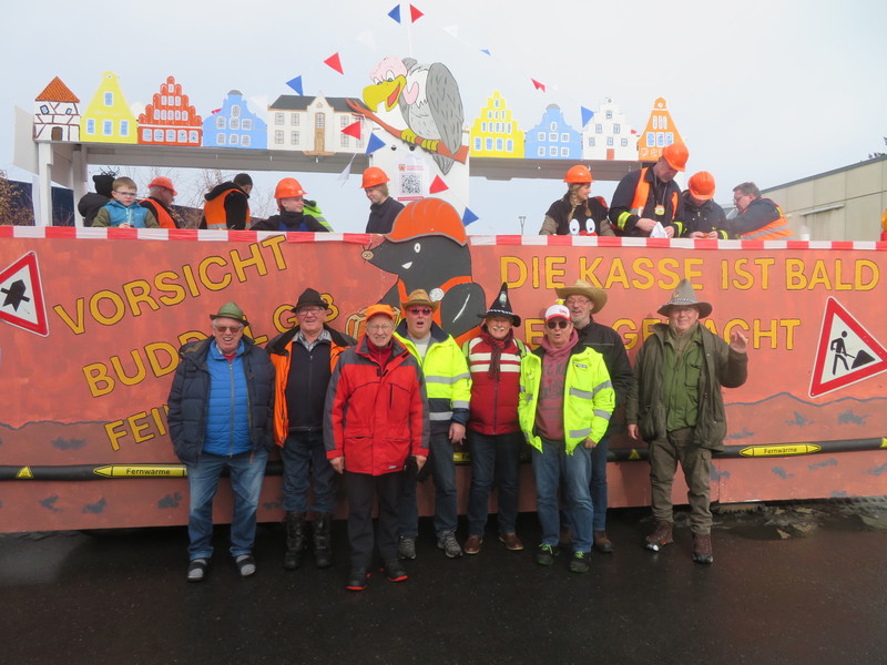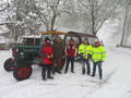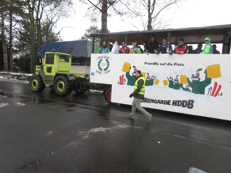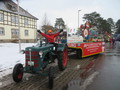 Im tiefen 15 cm hohen Neuschnee, das hatten wir in über 30 Jahren Teilnahme noch nicht, startete unsere Gruppe am 18. Februar zur traditionellen Teilnahme am Rosenmontagsumzug in Warendorf. Acht Fahrer mit teils historischen Treckern waren im Einsatz, um Motivwagen bzw. Begleitwagen für teilnehmende Gruppen zu ziehen. Beim Rangieren auf dem Gelände der Deula, dem Standort von einigen Wagen, gab es eine unliebsame Überraschung. Die Schaltung eines eingesetzten Oldtimers ließ sich nicht mehr betätigen. Da war guter Rat teuer zumal wir unser Ersatzfahrzeug bereits durch den kurzfristigen Ausfall eines Fahrers verplant hatten. Gott sei Dank hatten wir mit unserem Vorsitzenden Frederic Hollmann einen Fachmann zur Hand der kurzfristig und rechtzeitig den Fehler beheben konnte. Das Fahrzeug lief dann im Umzug problemlos. Über 80 Gruppen nahmen diesmal an dem ca. drei Stunden dauernden Umzug teil, unter anderem auch einige Kapellen aus den benachbarten Niederlanden. Zahlreiche Besucher säumten wie immer die Fahrtstrecke, die vornehmlich durch die historische Altstadt führte. Das wichtigste war, vor allem für unsere „Cabriofahrer“, dass es die ganze Zeit über trocken blieb. Die Sonne zeigte sich zwischendurch sogar am ansonsten wolkenverhangenen Himmel. Nach dem Umzug und der störungsfreien Rückfahrt gab es noch einen gemütlichen Ausklang im mollig warmen Backhaus auf dem Hof Recker mit kaltem Bier und Leberwurst und Wurstebrot frisch aus der Pfanne. Dabei wurden auch die vom Bürgerausschuss Warendorfer Karneval erhaltenen Erinnerungssticker an die Fahrer übergeben. Der nächste Termin für eine Teilnahme steht schon fest. Im Jahr 2027 fällt der Rosenmontag auf den 8. Februar und damit noch früher als in diesem Jahr. Heißt also jetzt schon: „Warm anziehen“.